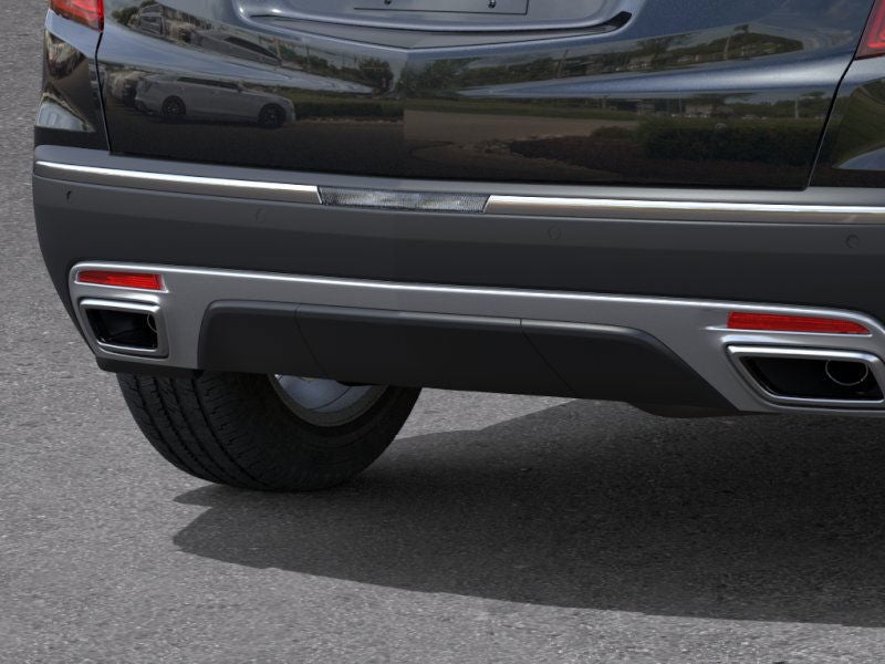 - Opens or closes when the system senses the key fob and the driver extends their foot under the left-hand side of the rear bumper over an image of the Cadillac Crest projected under the vehicle